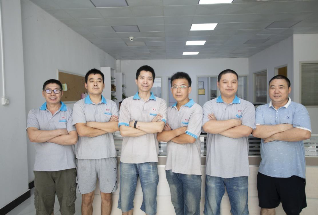 完善生产架构,拥有整木、五金、玻璃、大理石、亚克力以及异形六组生产线。